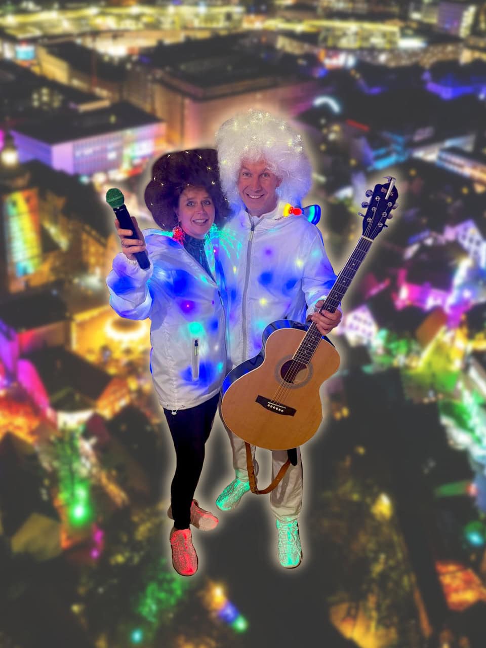 Verena Strass und Meike Pöther bringen als Walkact „Elemente Luft und Erde“ musikalische Highlights in die Straßen von Recklinghausen leuchtet. Mit einem bunten Potpourri aus live gesungenen Songs verzaubern sie das Publikum – mal hier, mal dort – in der gesamten Recklinghäuser Innenstadt.